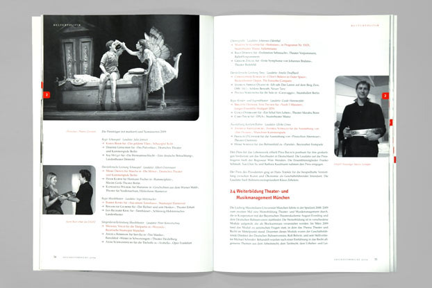 The Deutscher Bühnenverein is a politico-cultural organisation that represents the interests of its members, namely theatres and orchestras. Its aim is to preserve, promote and develop the diversity of the German theatre and orchestra landscape and its contribution to cultural life. MWK is designing the Annual Report since 2005.