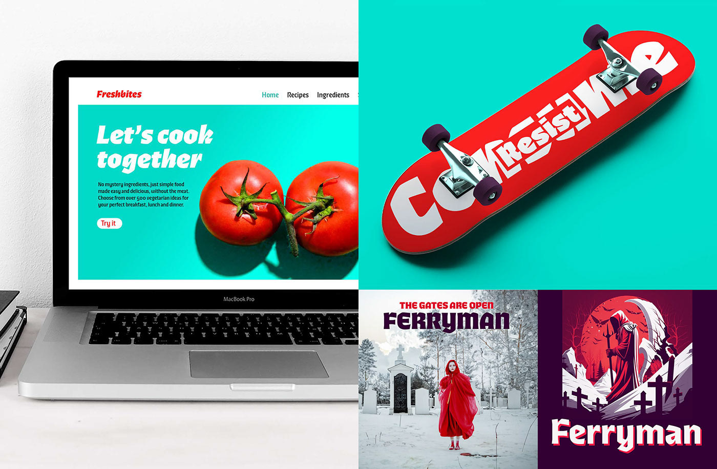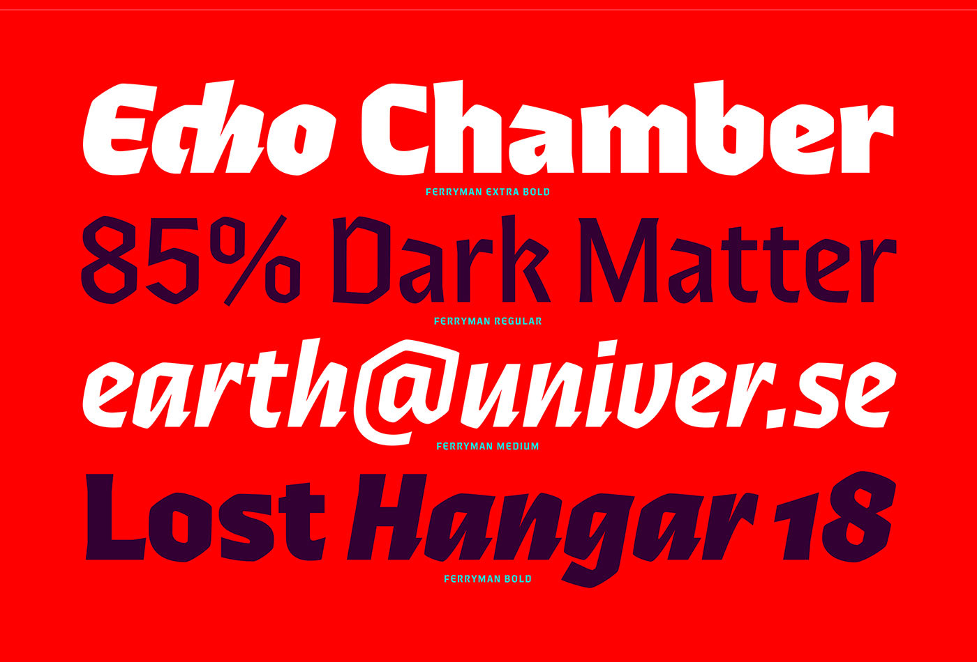 Ferryman is the antidote to the overused geometric and neogrotesk styles. An expressive display typeface with a strong character, it is perfectly suited for counterculture projects and progressive concepts e.g. in visual art, indie music, and alternative lifestyles.