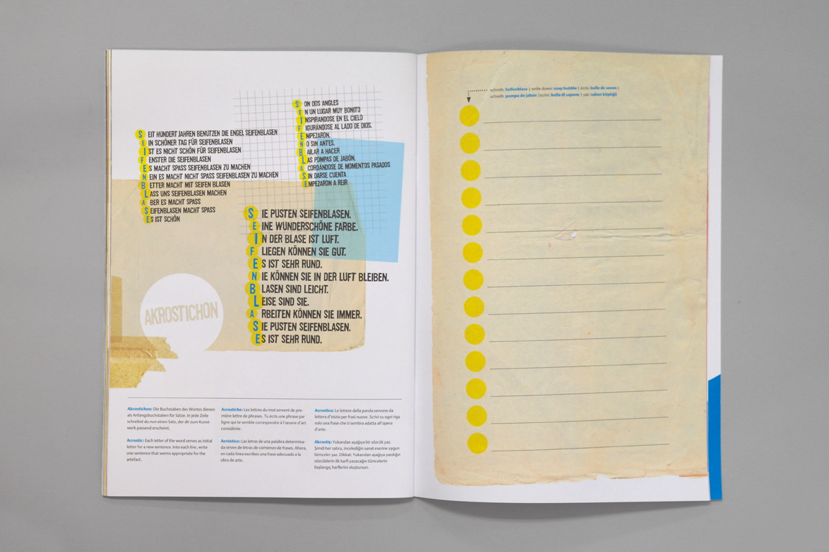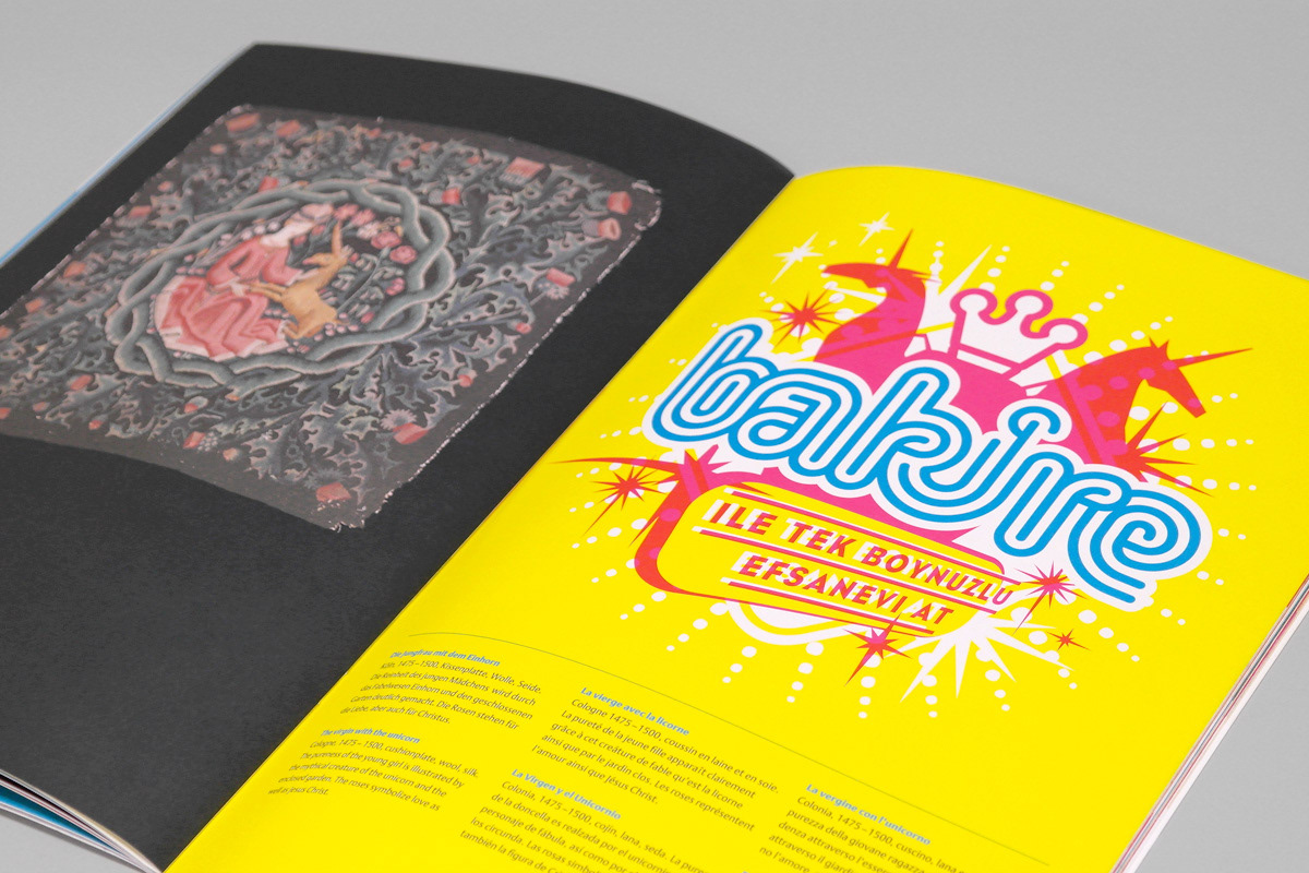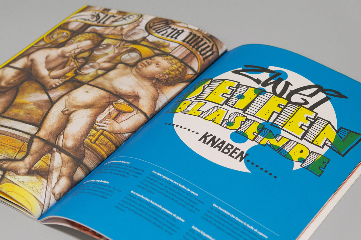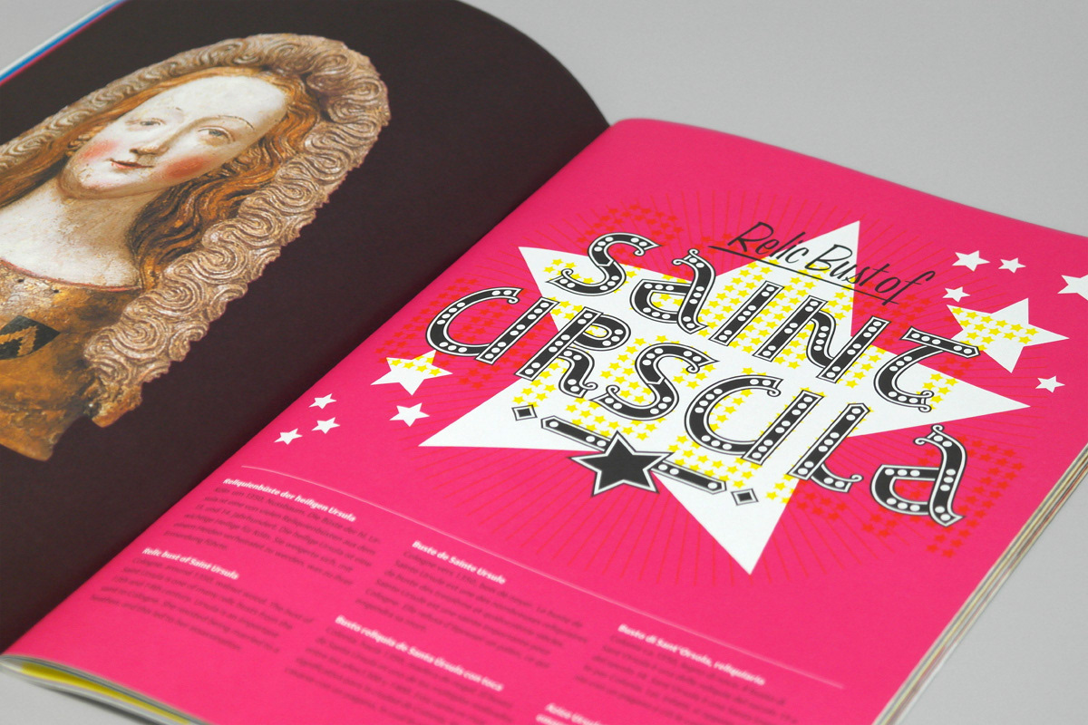 Accompanying the exhibition »Glanz und Größe des Mittelalters« at the Museum Schnütgen Cologne we created an interactive catalogue especially for children, set up in six languages. Visiting the exhibition, the young visitors can explore by their own works of art and deal with each object puzzles and tasks. In the catalog, the objects are presented in a child-oriented way with many citations to the design aesthetics of comics, movies, pop culture, footballclubs and computergames. In addition to this projects are shown by other children they are produced in the forefront of artworks.